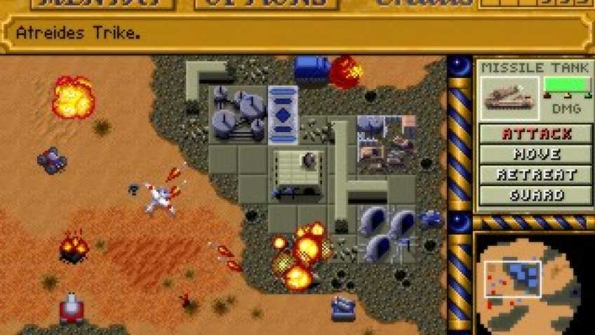 Так родилась игра, которую часто называют первой RTS в современном понимании этого жанра. В соответствии с геймплеем, Westwood добавила еще один Большой Дом (т.е. Ордос) и существенно перекроила сюжет, превратив местную партизанскую войну против захватчиков в ожесточенную битву армии будущего. Конечно, бесплатные вещи остались в игре (нет дюн без этих харизматичных бедуинов из космоса) — но с военной базы Атрейдесов они превратились в один из видов арендуемых юнитов.