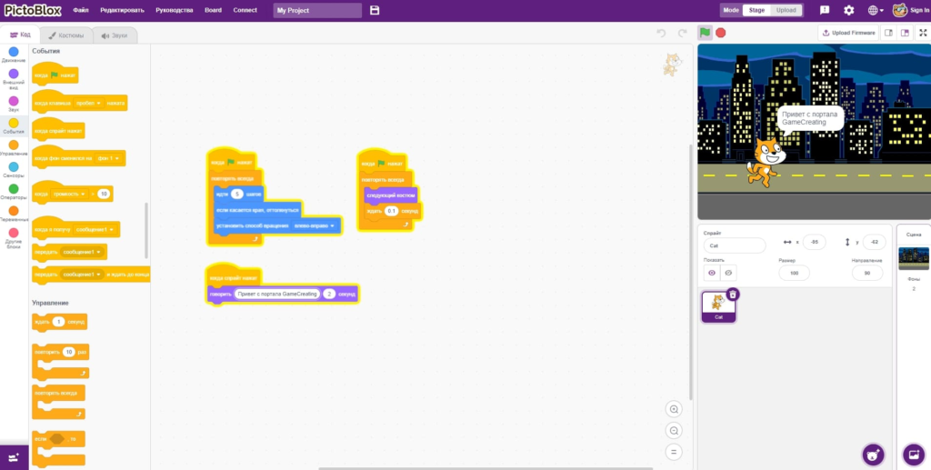 PictoBlox основан на языке программирования Scratch, но дополнен новыми функциями, позволяющими работать с аппаратным обеспечением, таким как микроконтроллеры, датчики, моторы и т.д. Благодаря этому, с помощью PictoBlox можно создавать не только игры, но и управлять реальными устройствами, создавать роботов и другие устройства.