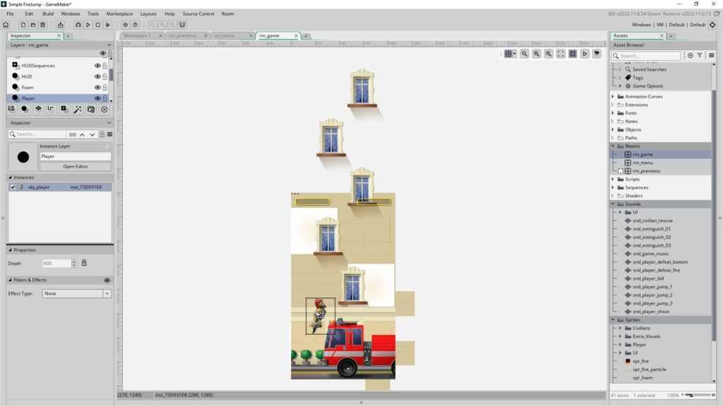 GameMaker – другая бесплатная утилита для новичков, с помощью которой можно делать игры для Windows, Mac, iOS и Android. Как и в Stencyl, тут почти всё работает на перетаскивании, но есть ещё и хуки для многопользовательских игр, ссылки на внешние SDK, возможность покопаться в коде и многое другое. Бесплатная версия при экспорте накладывает водяные знаки, но, тем не менее, GameMaker отлично подходит для первого раза и содержит встроенное обучение основам. Тут нет такового жанрового ограничения, как в Stencyl, и можно найти отдельные руководства для разных типов игр. В GameMaker сделали оригинальную версию Spelunky и Hotline Miami.