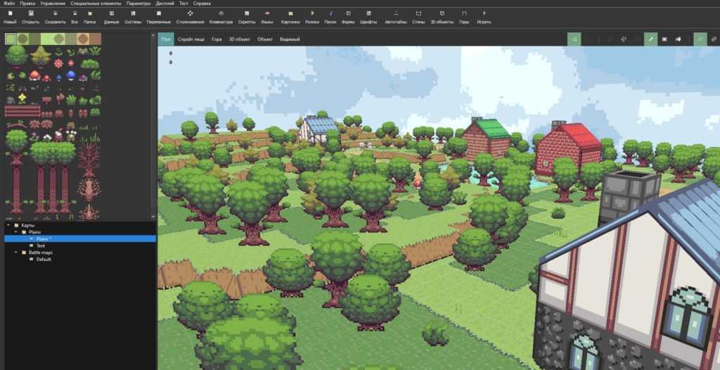 Классика, которая была на рынке уже более 25 лет назад. На RPG Maker создавались сотни коммерческих видеоигр, и многие есть в Steam. Последняя версия, известная как RPG Maker MV, поддерживает высокое разрешение и разработку для PC и мобильных устройств. Этот движок также не требует знаний в области программирования. Игры создаются в дружественных для новичков меню из огромного количества ассетов (объектов).