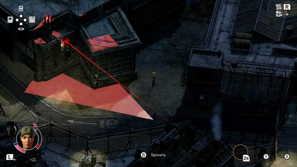 Но все это полная чепуха по сравнению с тем, что ждет вас уже на второй обучающей миссии (первая чересчур миниатюрная для каких-то выводов). Любая часть серии Commandos требует от игрока точности и скорости — и схема управления, реализованная авторами ремейка на Nintendo Switch не помогает, а наоборот, только сбивает с толку. Вместо привычного управления курсором перемещение героев осуществляется напрямую при помощи левого стика. Решение кажется очевидным, но эта иллюзия развеивается, стоит дойти до дела.