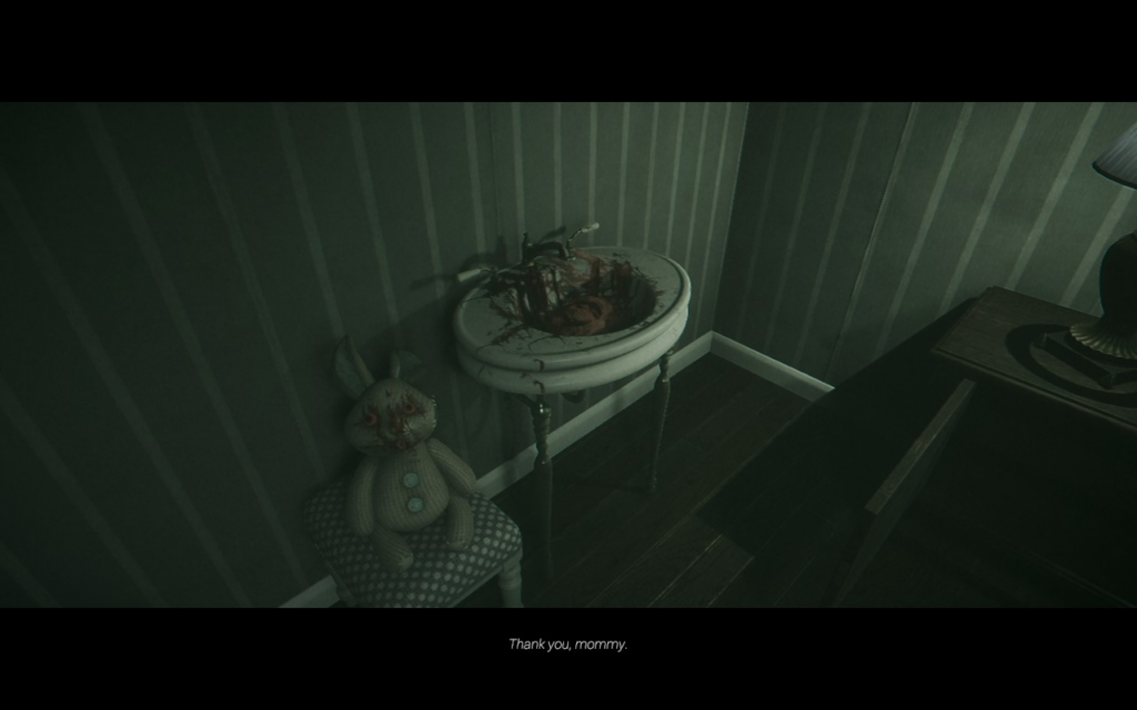 Спуститесь по коридору в центральную комнату с кроликом. Разговор с сущностью в раковине направит вас к поиску глаз кролика. Возьмите ложку из ящика под проигрывателем. Откройте дверь с той же стороны комнаты и отведите глаза от второго тела вниз по коридору.