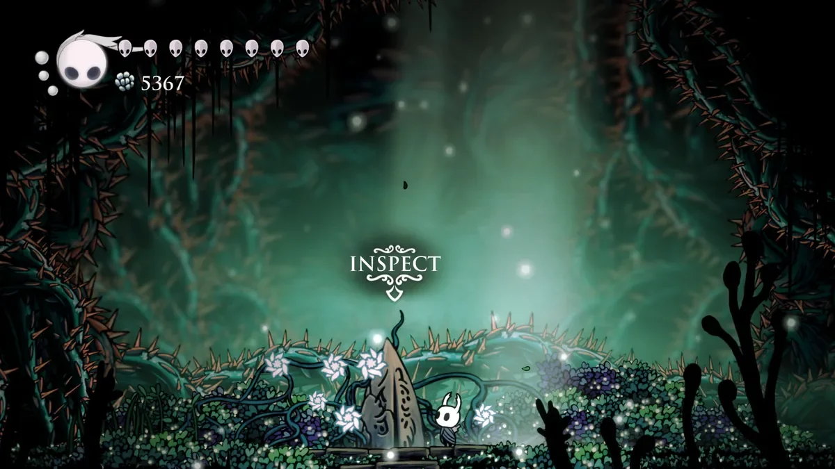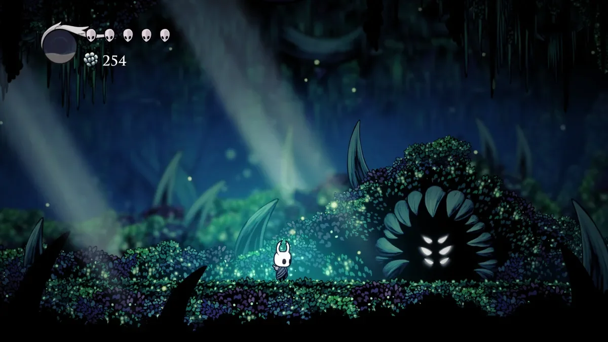 Хочется отметить, что геймплейная составляющая передаётся с помощью звука и визуализации происходящего. Эффекты способностей, дают визуальную информацию, примером этому есть способность “Кристальное сердце” когда игрок зажимает кнопку, происходит накапливание энергии, вспышки становятся всё ярче, экран начинает трястись и игрок заведомо понимает на каком моменте нужно отпускать кнопку. Когда игрок передвигается и решит резко остановится, то потоки воздуха продолжат двигаться впереди него, конечно здесь присутствует анимация, но более важную роль для воспроизведения этого и для понимания игрока, что здесь происходит используются визуальные эффекты. Также для удобства и большей информации предоставленной игроку в игре есть полоска здоровья, ведь дамаг, который вы получаете показан не только через анимацию, так как вы можете попросту пропустить момент получения урона, для чего и был сделан яркий черный всплеск при ударе по вам, который можно будет легко проследить. Так что передача игровой информации игроку в Hollow Knight через анимацию и визуальные эффекты, сделаны хорошо.