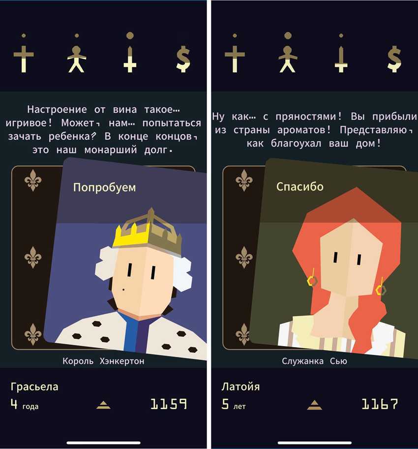 В игре вы будете контролировать королевство с помощью положительной или отрицательной оценки событий.