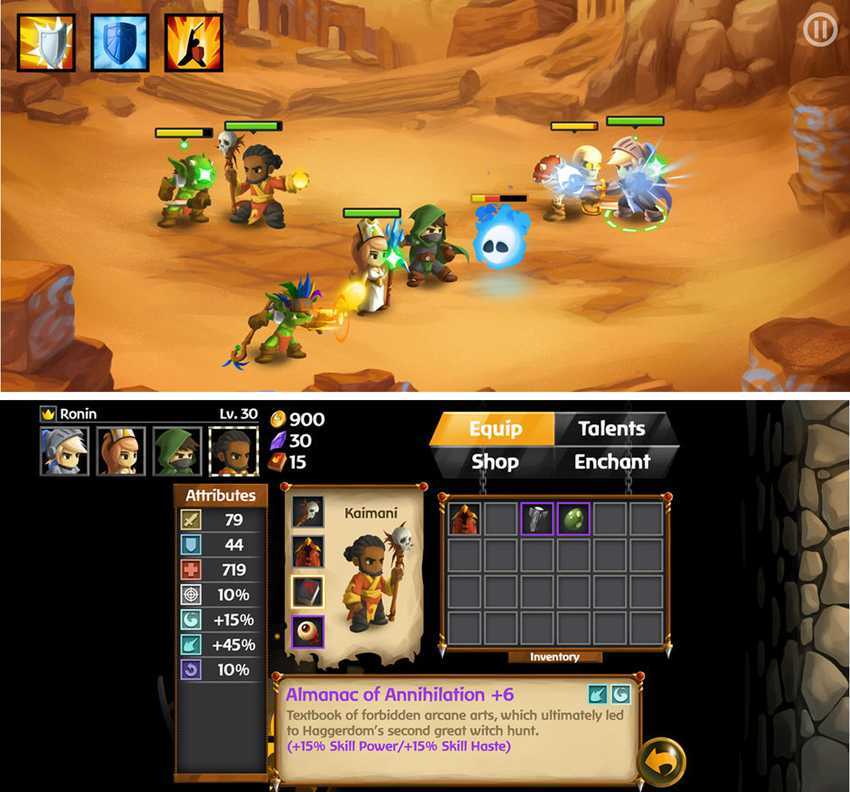 Чтобы не было скучно, в перерывах между сражениями вы будете корректировать состав команды и улучшать каждого из ее членов.