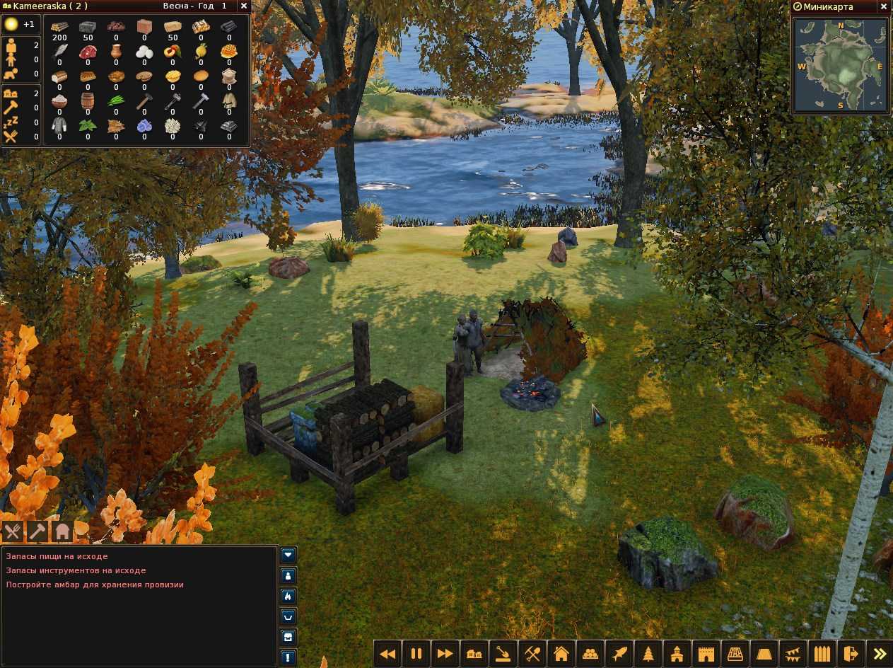 Следуя предварительным рекомендациям запастись до наступления зимы, вам нужно будет приготовить много еды. В основном, только два источника пищи, которые вы сможете получить зимой — это курятники, охотники или рыбаки. Лето — время запастись фруктами и овощами из садов, полей и собирателей. Поэтому очень разумно иметь хотя бы одного работника в каждом из этих зданий. Так что, да, вам нужно быстро построить продовольственные здания. В первый год мне нравится начинать с одной рыбацкой ложи, одной охотничьей хижины и одной хижины собирателя. Каждый свободный работник распределяется между ними, и вы обнаружите, что ваш запас будет достаточно, чтобы пережить зиму в кратчайшие сроки. Конечно, по мере того, как вам будет доступно больше рабочих, а ваша деревня будет расти, будет разумно также расширяться на поля, сады и кооперативы.