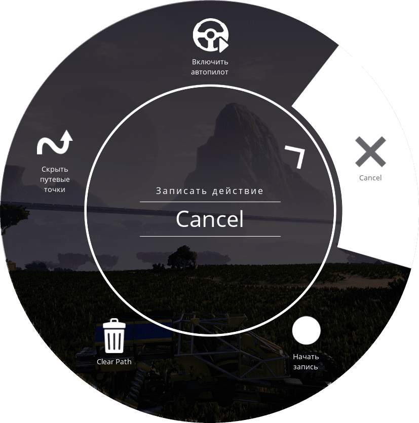 Теперь трактор будет ездить по заданному маршруту со всеми остановками. Если залезть в автомобиль на ходу, то режим автопилота автоматически выключится, пока игрок не покинет машину. Стоит учесть, что транспорт не умеет двигаться назад на автопилоте, поэтому при записи маршрута для автопилота необходимо избегать использование задней передачи. Также, если на пути автомобиля окажется какое-либо препятствие, то он постарается вернуться обратно на заложенный путь, пока не закончится топливо. Для заправки транспорта на маршруте необходимо использовать грузовую станцию.