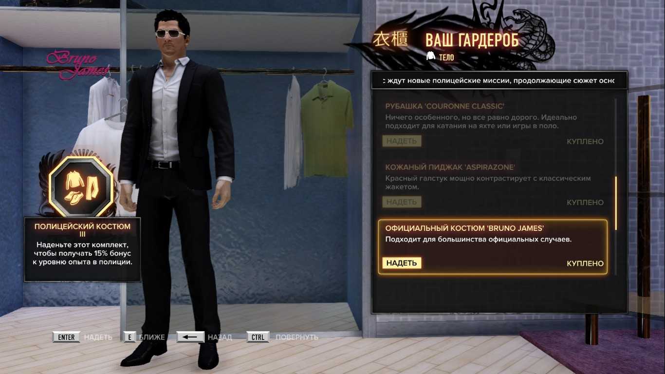 В игре так же присутствует одежда прибавляющая к полицейскому рейтингу от 5 – до 15%. Открыта одежда вначале будет не вся. Так что не советую вам, сразу рваться зачищать все притоны и выполнять все дела. Сначала поднакопите авторитета и денег(как это сделать я писал выше), прикупите одежды и в бой.