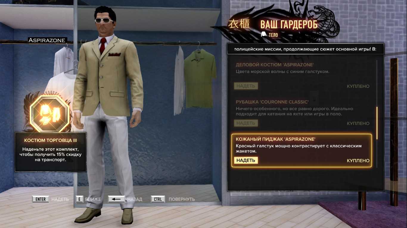 Как я писал многократно выше, не спешите скупать всю одежду в начале игры. Получите сначала максимальный уровень авторитета. Тогда одежда будет стоить не дороже 30 000 тысяч.