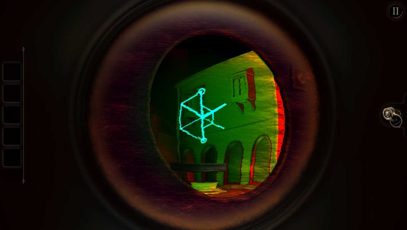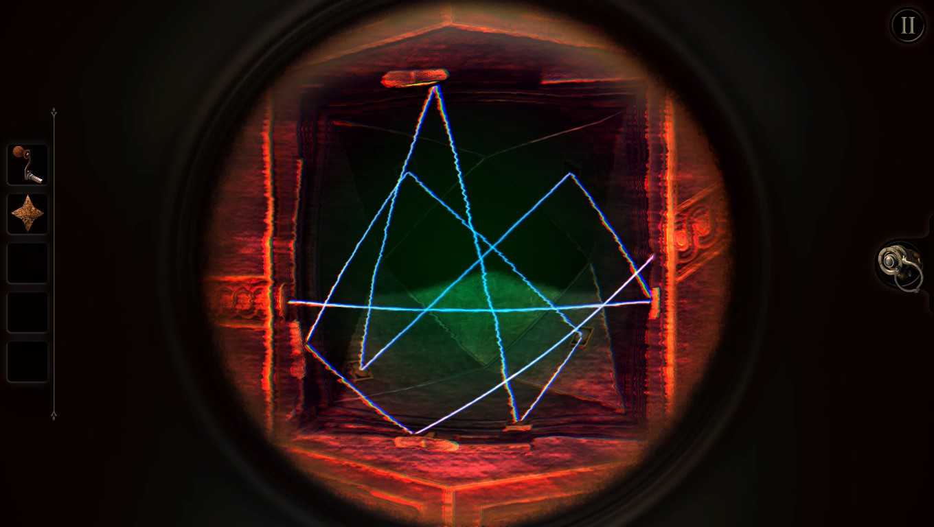 Выдвигается некий механизм. Вставляем туда фото, щелкаем по окуляру и смотрим в линзу. Получаем подсказку. Слово – SIGIL. Забираем «Небольшой деревянный колышек». Перемещаемся к стороне шкатулки с буковй Q, надеваем окуляр.