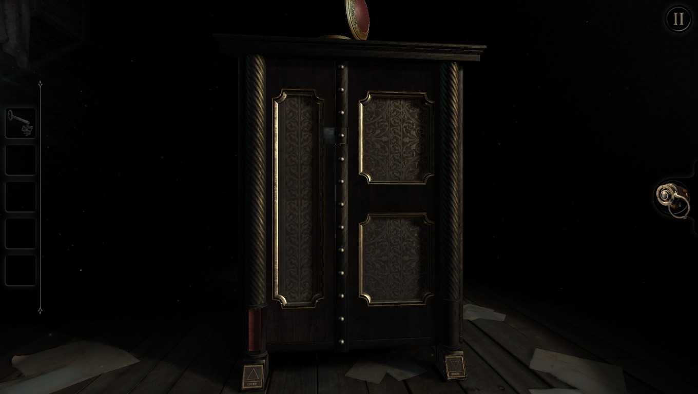 На ножкох шкафчика находим символ огня (fire) и нажмите на него. Берём ключ и изучаем его в инвентаре.