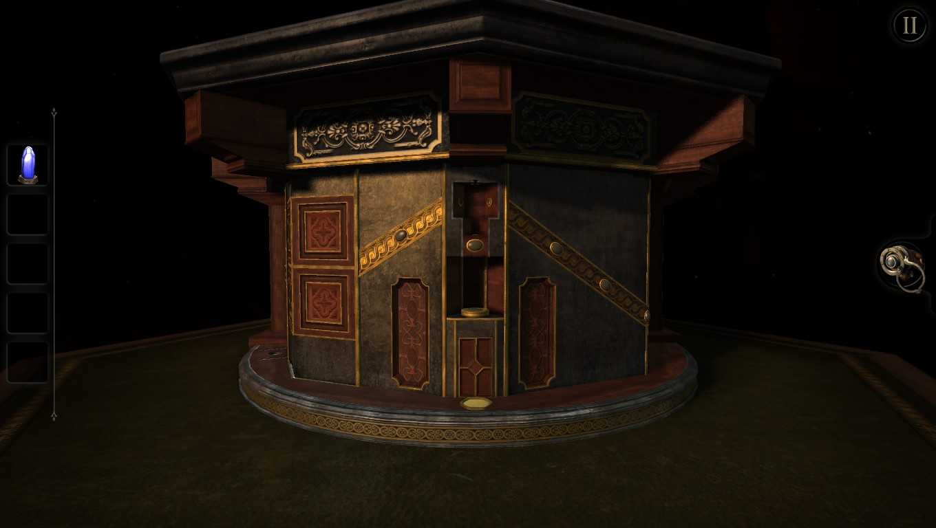 Перемещаемся к стороне шкатулки с замочной скважиной. Вставляем ключ.