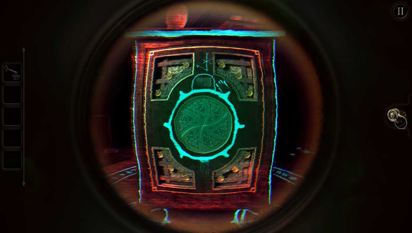 Зажимаем ЛКМ, осматриваем шкафчик со всех сторон. Дважды щелкаем по верху шкафчика. Вытаскиваем из конверта письмо. Забираем ключ. Нас перемещают к шкатулке. Крутим крышку шкатулки, пока замок не совпадёт. Используем ключ на замок шкатулки. Забираем окуляр.Он появится в правой части экрана. При нажатии ничего не происходит – не хватает детали.