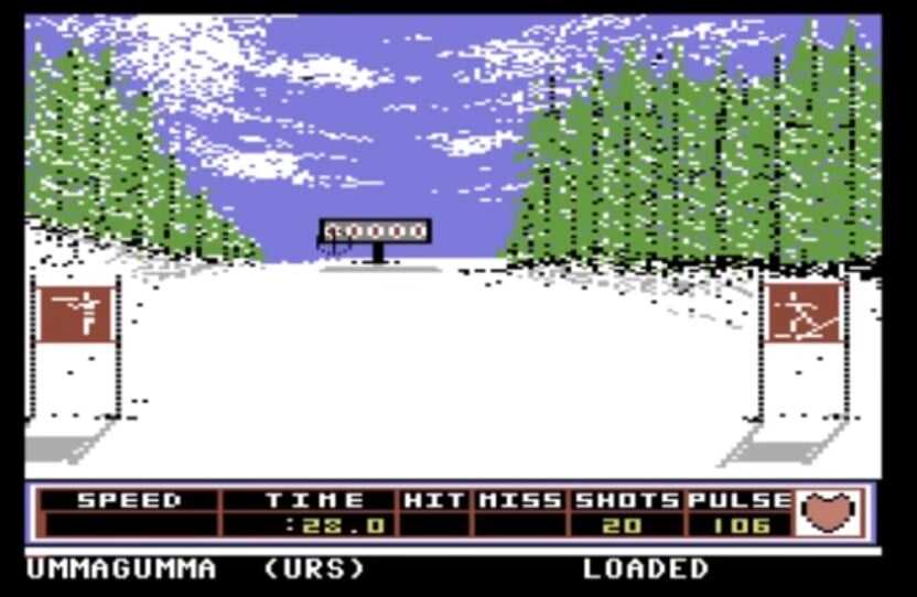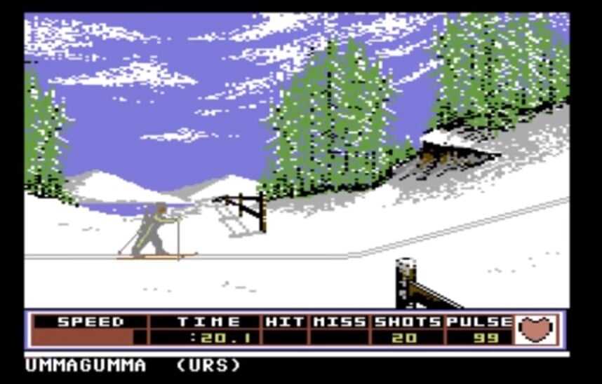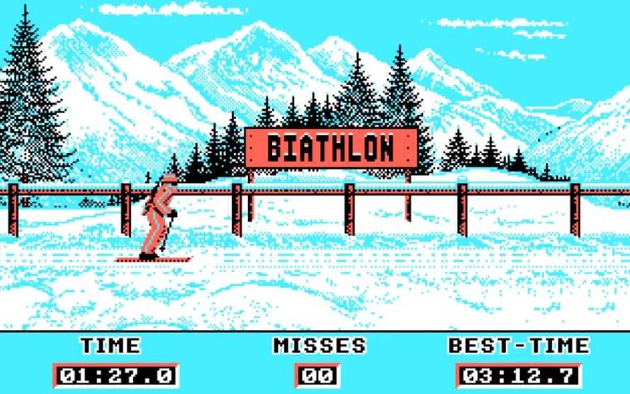 Начало истории биатлона в видеоиграх похоже на ситуацию с фигурным катанием – изначально существовали лишь игры о зимней Олимпиаде, где биатлон был одной из опций. Впервые его реализовали в 1985 году на консоли Commodore 64. В сборнике Winter Games помимо биатлона были прыжки с трамплина, санки, фигурное катание, коньки, бобслей и горные лыжи, но к Олимпиаде эта игра отношения не имеет.