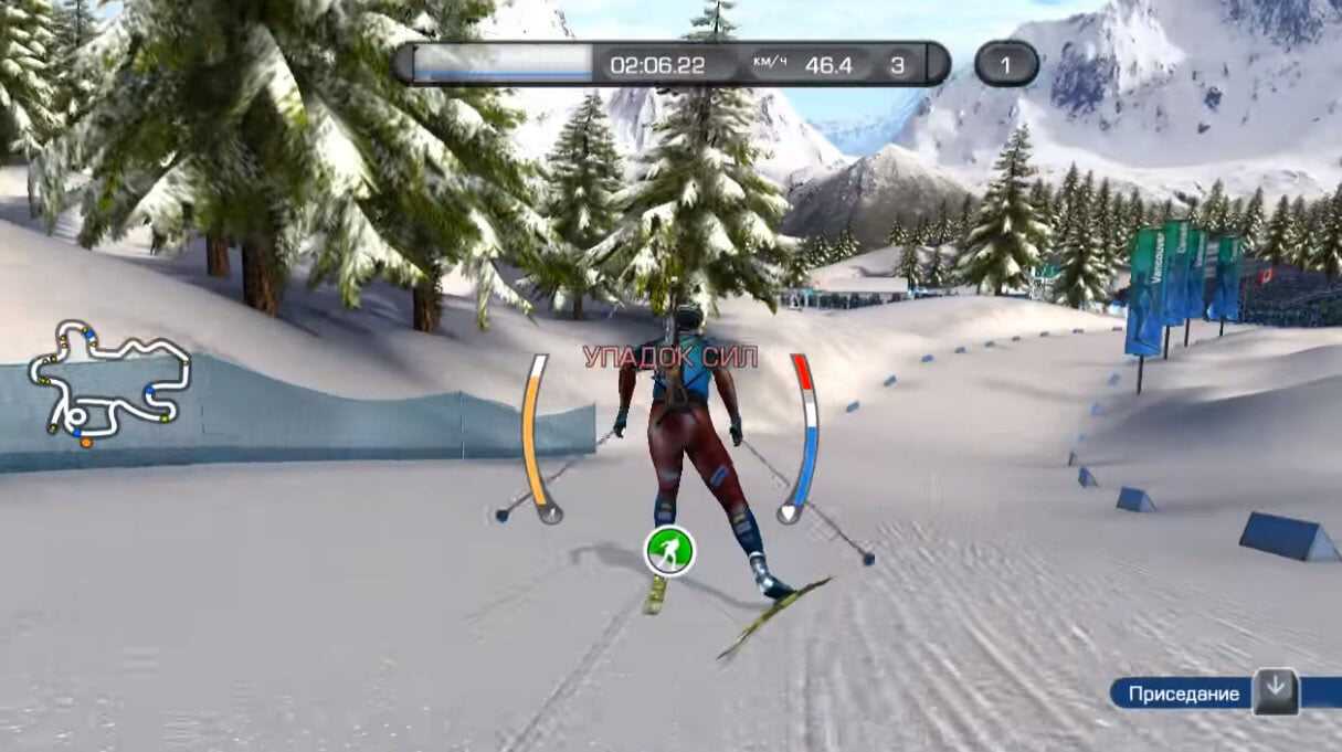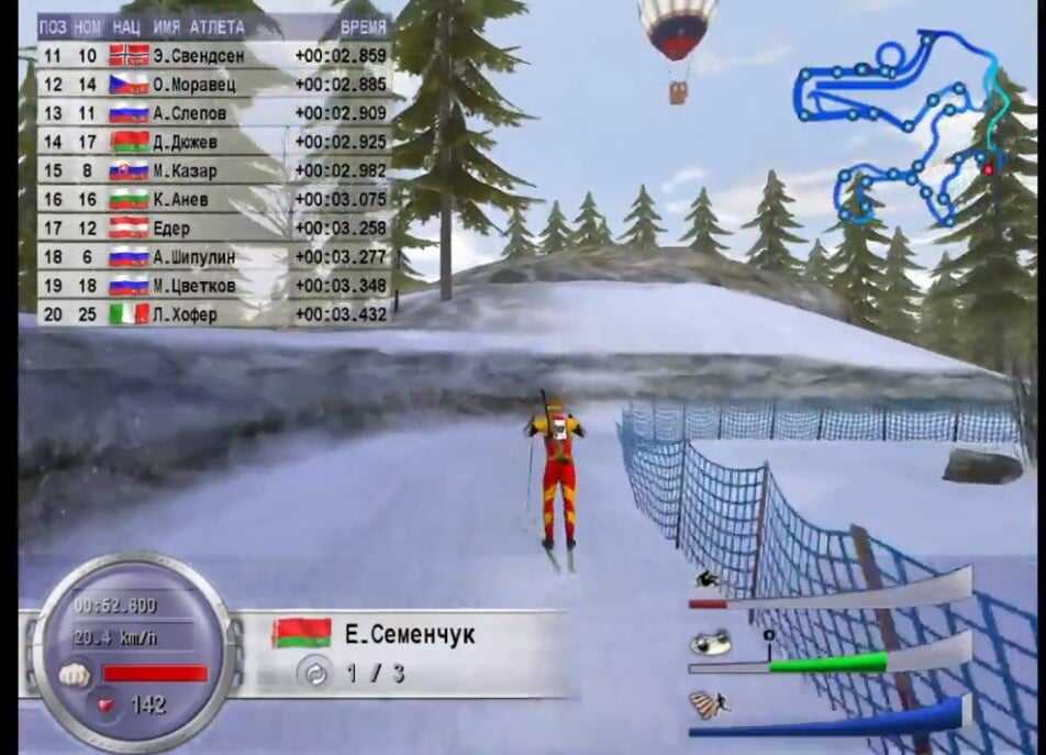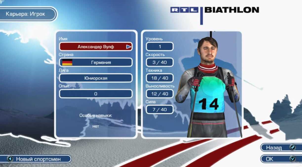 Биатлон пришел к Ubisoft в 2003 году, до этого два года серией занималась студия Infogrames Inc. (ныне – Atari UK), а вместе с крупным издателем появились лицензированные атлеты. Тут тоже можно создать и развивать персонажа, только вместо опыта спортсмен тратит деньги. В тренировках надо реально участвовать, то есть отдельно прокатится одному, чтобы вкачать слалом, или пострелять без соперников, чтобы меньше трясло прицел – поначалу радует, но скоро превращается в рутину.
