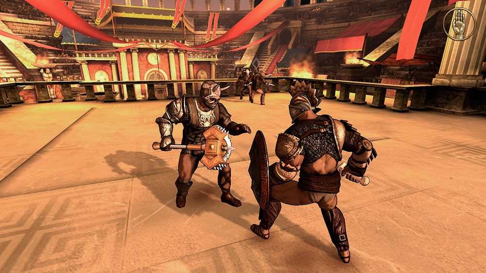 Задача игрока — остаться на арене в единственном числе. Противников масса — обычные гладиаторы, преторианцы, всевозможное зверье. Для любителей фэнтези завезли даже мумий и минотавров. Есть четыре режима — тренировка на маленькой арене, обычный бой на большой, кампания с турнирной таблицей и гонки на колесницах. Между схватками есть доступ к рынку, где можно приобретать оружие, снаряжение, даже еду (чтобы восстанавливать силы). Оружия много — от меча со щитом до лука. Лук особенно смертоносен, но количество стрел ограничено. С точки зрения механики боя фишек в достатке. Например, есть три варианта захвата вражеского оружия, которые выполняются определенными движениями контроллера. Провернуть в динамике боя сложно, но выглядит мощно. Толпа оценит, не сомневайтесь!