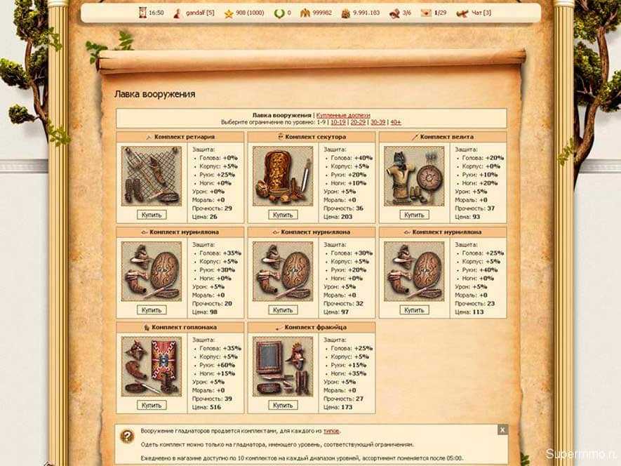 что выше идет в ваш кошелек). Также можете купить раба на рынке рабов и взрастить из него хорошего гладиатора самостоятельно