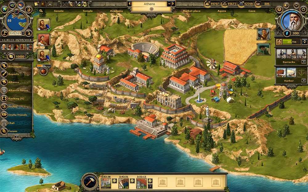 Но не забывайте про благосклонность богов, их в игре шесть: Афина, Артемида, Зевс, Посейдон, Гера и Аид. Их помощь может стать решающей в напряжённой битве. У каждого из них уникальные способности: Афина сплочает и укрепляет оборону, Посейдон вызывает морские бури, что разрушают вражеские корабли, Гера повышает производство, Аид исцеляет войска, Зевс может разрушать целые здания и топить флот противников, силы Артемиды убирают вражеские чары и повышают точность вашей армии. Если нет друзей для игры – не беда, в Grepolis вы быстро найдете единомышленников и сможете вместе завоевывать мир.