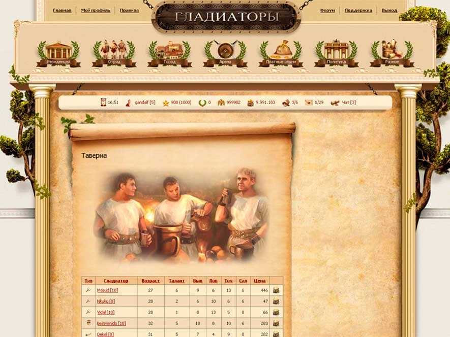 стать владельцем собственной школы гладиаторов. В вашей ответственности будет подбирать себе гладиаторов и их тренировать. Гладиаторов вы можете либо взять в