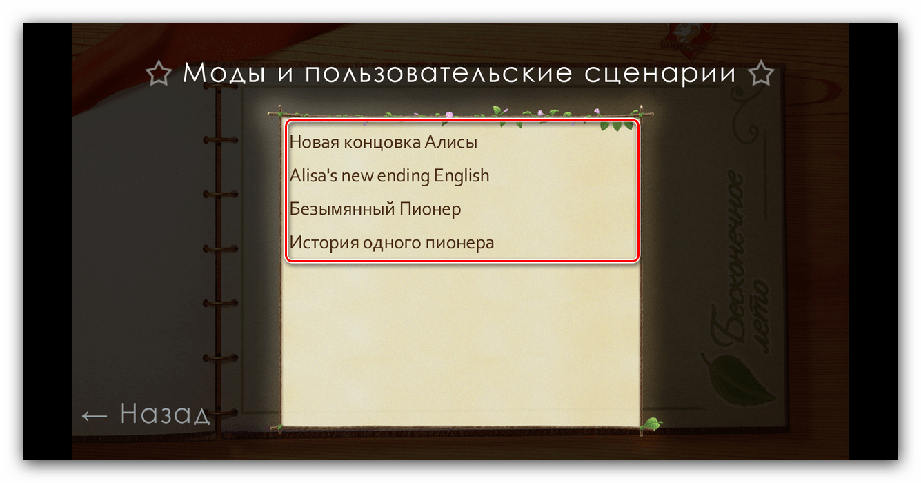 И снова мод от лица Алисы, но всё же есть одно главное отличие. Мод повествует нам о том, что было после лагеря. Мод коротенький, но прочитать его стоит!)