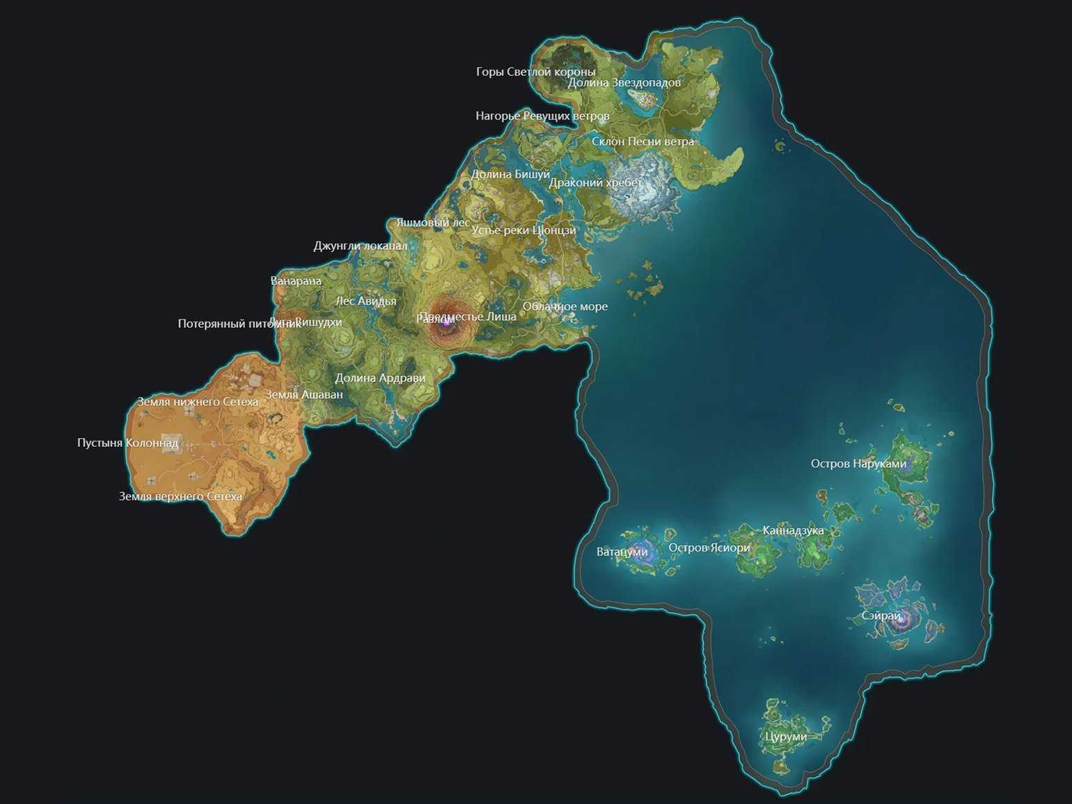 Карта Genshin Impact с регионами, доступными на данный момент Скриншот: Genshin Impact / miHoYo Limited