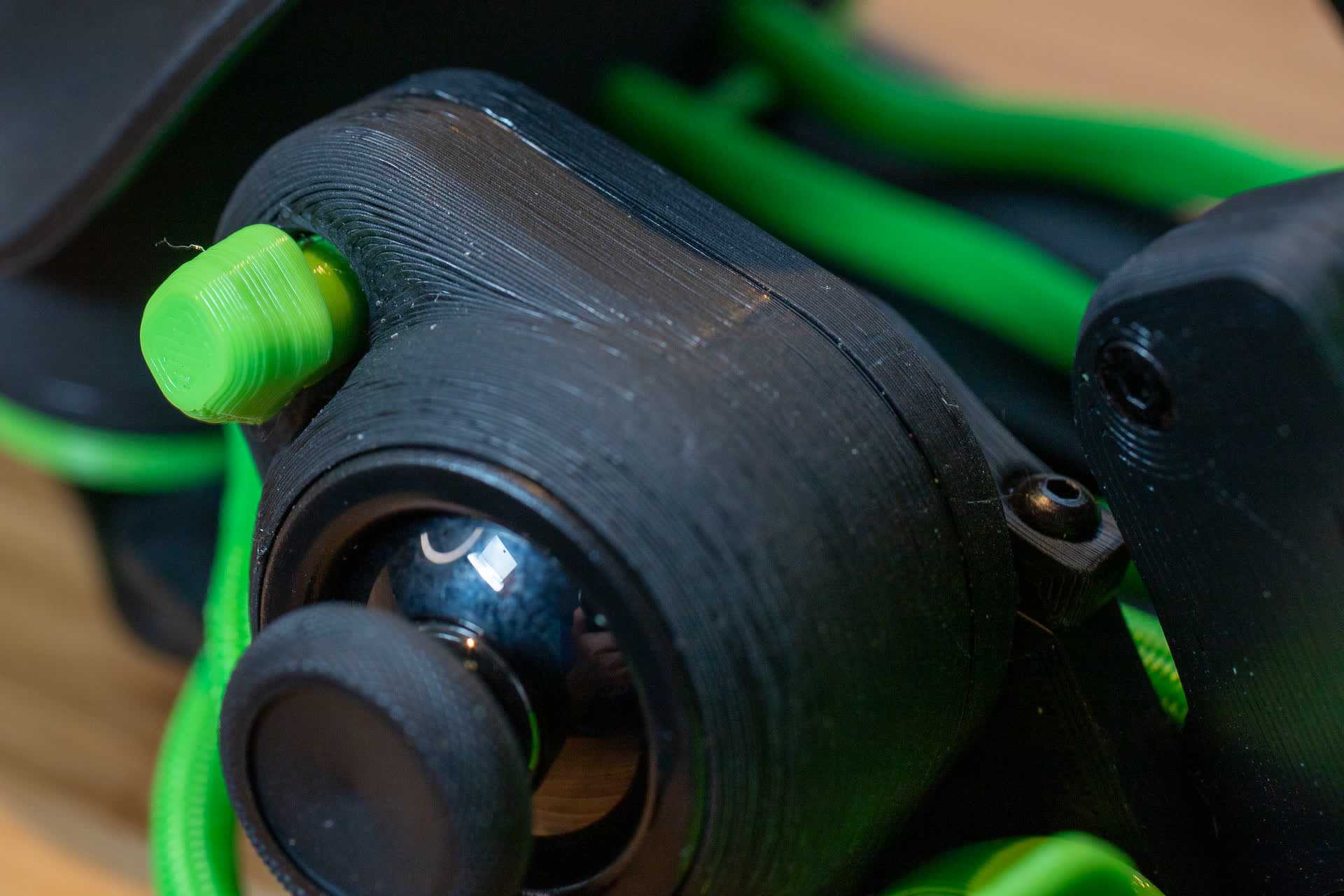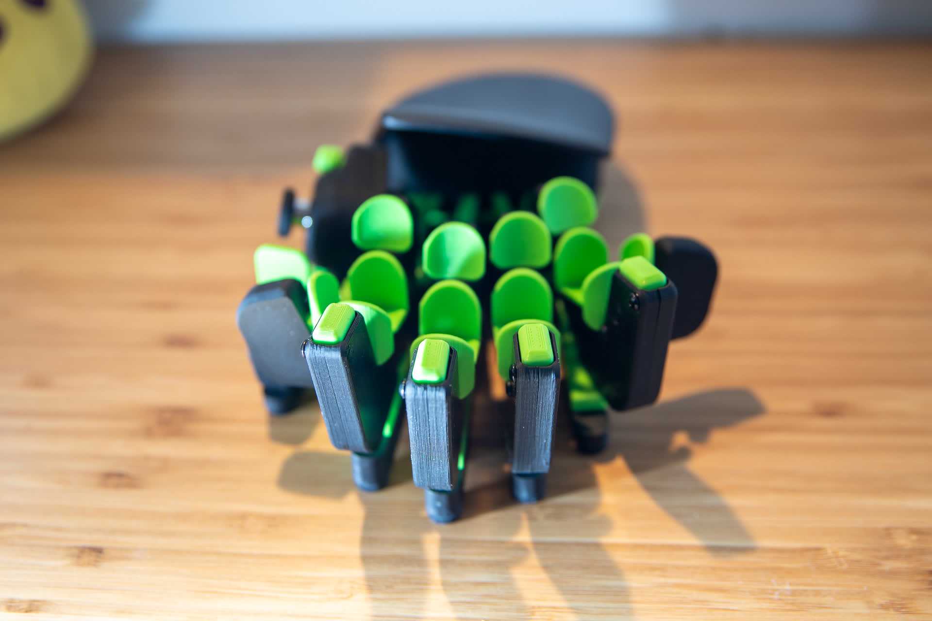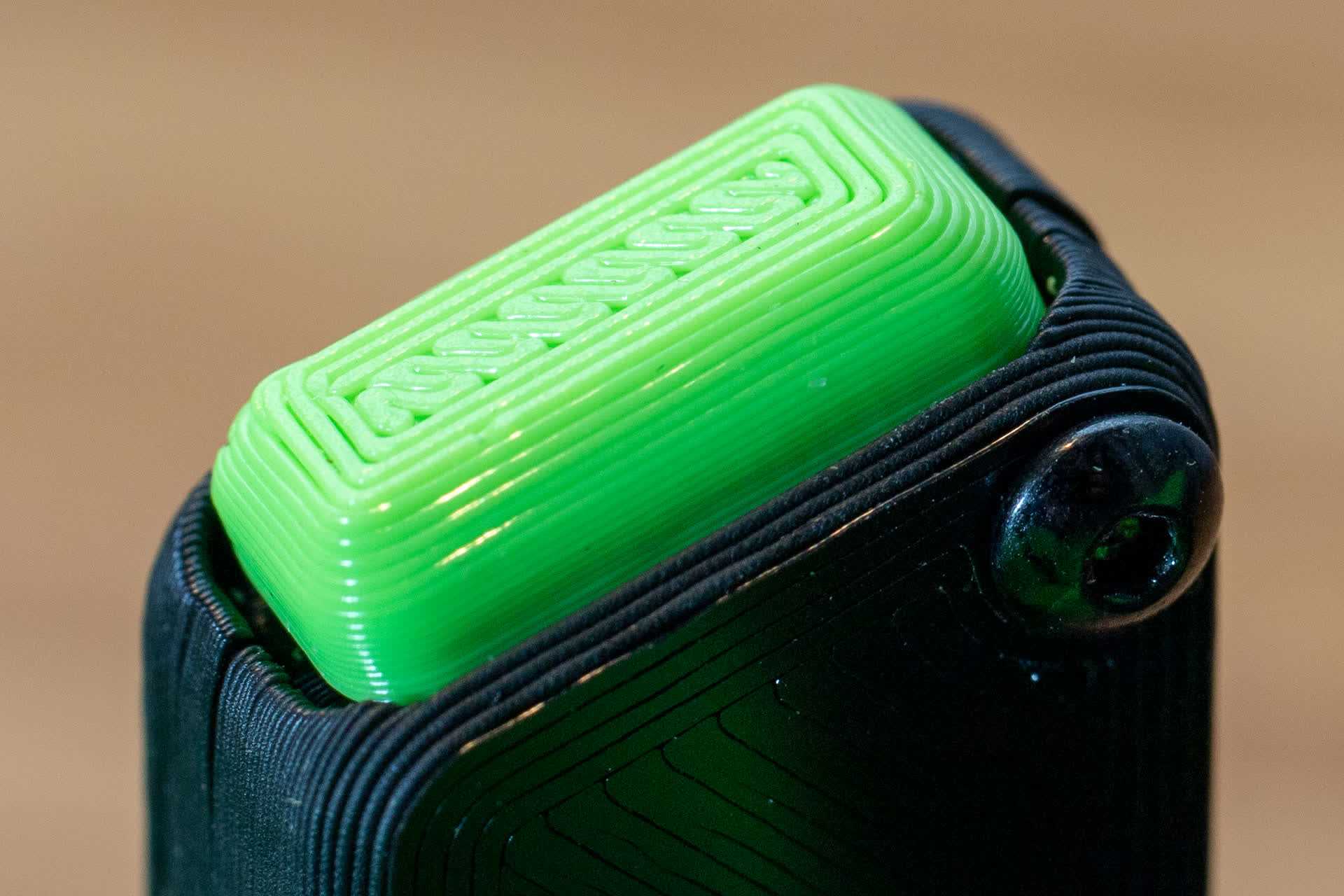 Но хватит об отвертке, давайте рассмотрим само устройство. У меня оно исполнено в строгих черно-зеленых цветах. Однако, большая часть деталей изготовлена из пластика с помощью технологии 3D-печати. Это значит, что цветов (филамента) может быть огромное количество, причем, в любой комбинации, хоть каждая кнопка своего цвета.
