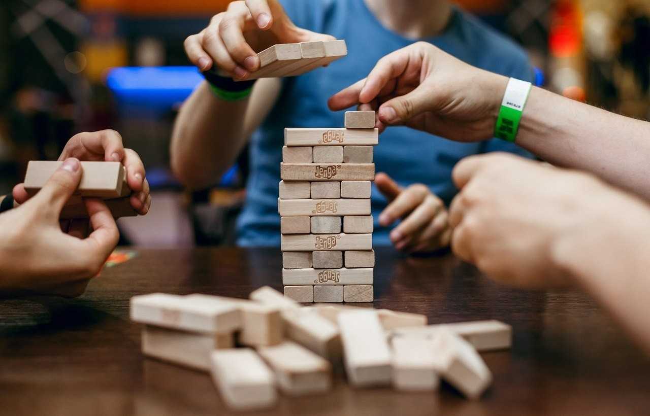 Игру нужно проводить с наличием ровной поверхности. Из домино, спичек или деревянных блоков (лучше всего) складывается башня. После первого блока от каждого участника добавляется по одной фишке. Тот игрок, который завалил конструкцию, считается проигравшим. Вместо проигрыша можно использовать штрафные очки с исполнением желаний. Исполняются они на подобии карточных желаний: спеть на стуле, прокукарекать, накрасить ногти зеленкой и т.д.