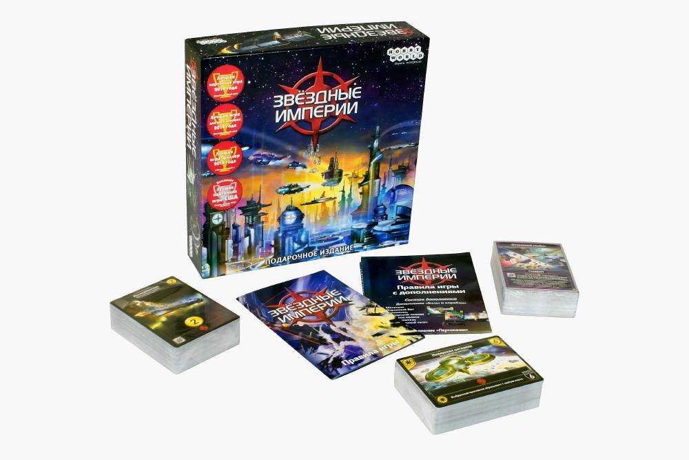 Чем увлекает. «Звездные империи» — хороший способ познакомиться с колодостроительными играми. Партии проходят быстро, а правила нетрудно освоить даже неопытным игрокам. Еще один плюс в том, что весь набор карт упакован в одну коробку. Не придется тратить целое состояние на покупку бустеров, как в коллекционных карточных играх.