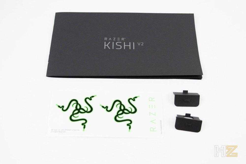 Здесь у вас есть аксессуары, которые Razer включает в себя Kishi V2 и которые состоят из обычного руководства по эксплуатации, наклеек с логотипом производителя и двух пластиковых деталей, которые мы видели ранее, которые являются не чем иным, как адаптерами для возможности регулировки размер элемента управления для различной толщины смартфона.