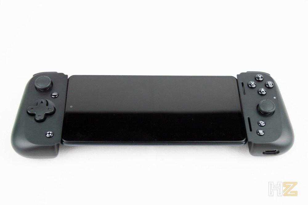 Плоская секция, соединяющая две половинки эластичная, поэтому вы можете установить что угодно, от небольшого Pixel 4 до Galaxy S20 Ultra, и получить тот же базовый опыт после подключения другой стороны. Никаких особых случаев или необычных адаптеров не требуется. Просто оберните этот контроллер вокруг телефона, и готово. Внизу самого контроллера есть порт USB-C, так что вы можете заряжать свой телефон во время игры.