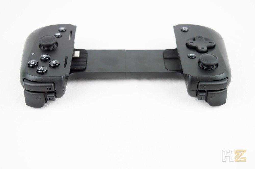 Razer Kishi состоит из левого и правого геймпада, но в отличие от многих телефонных контроллеров, которые состоят из двух отдельных половин контроллера, половинки Kishi соединены упругим с центральной удерживающей пластиной, которая устанавливается за телефоном. Это гарантирует, что игровые планшеты прикреплены аккуратно при подключении к телефону, а когда они не используются, вы можете объединить все в портативный блок.