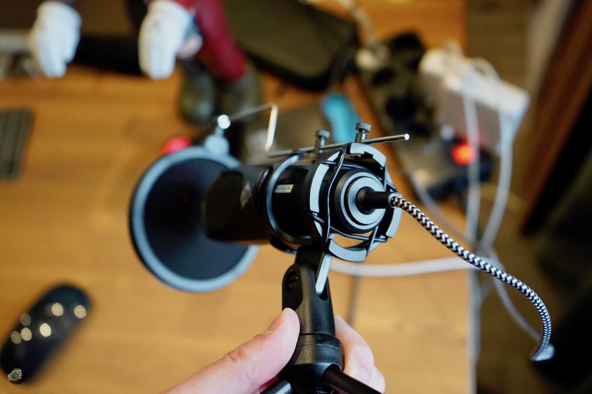 Рук сделан сомнительного качества, стальной каркас с металлической корзиной, закрепленной на резинках. Мы помещаем туда микрофон, и нам больше не нужно беспокоиться о вибрациях. Как только нам понадобится оборудование, мы элегантно приближаем всю конструкцию друг к другу, записывая материал без серьезных препятствий и удаляясь от лица, когда закончите. Микрофонная рукоятка Trust EMITA была оценена в 150 злотых, но для некоторых это будет абсолютно обязательной покупкой.