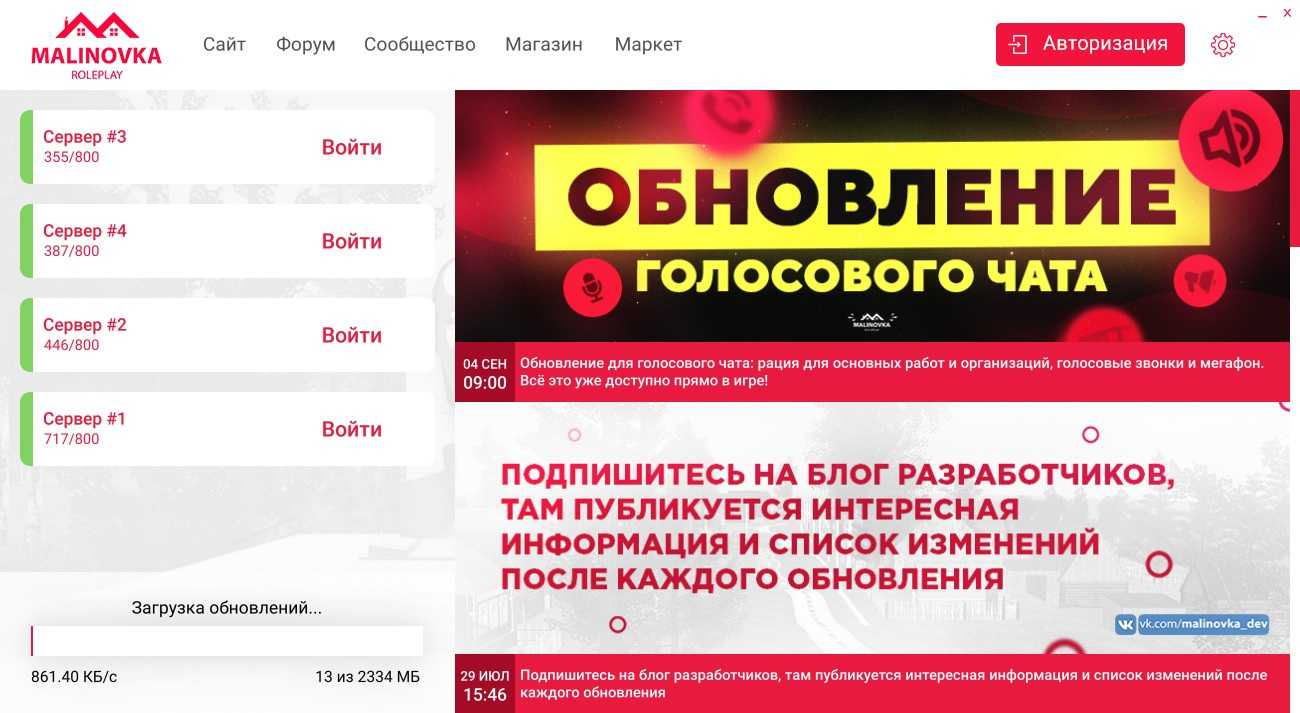После первого запуска лаунчера (клиента) игры ГТА Малиновка, скачивание файлов игры начнется в автоматическом режиме (должен быть доступ в интернет).
