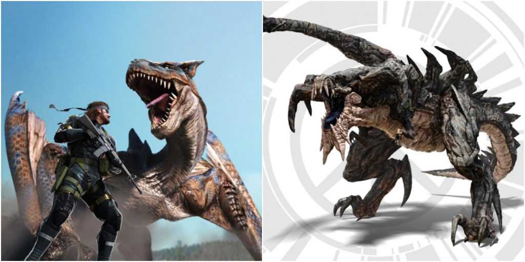 Начиная с Peace Walker, Снейк может отправиться на полуостров, заполненный чудовищами, включая Тигрекса и Раталоса, и даже сделать ружьё на базе лёгкого лука. Он также может повстречать неповторимого для коллаборации монстра Gear REX. В Monster Hunter Portable 3rd у Felyne быть может экипировка, сплетенная с MGS. Не считая того, можно получить костюмчик Снейка и Шефа.