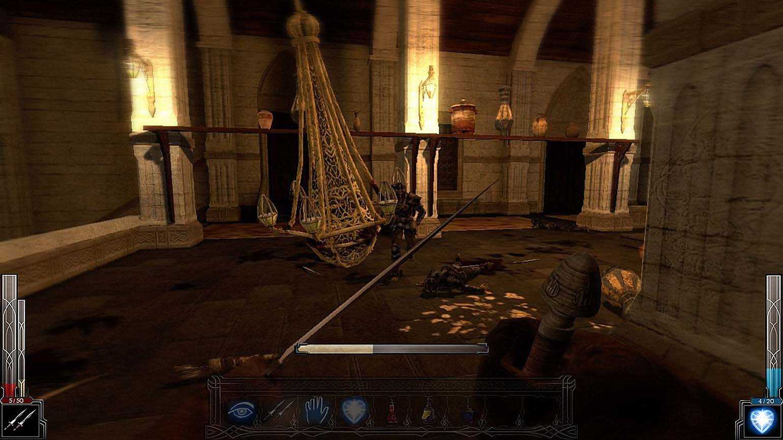 Сейчас эта люстра закончит схватку одним ударом. Скриншот: Dark Messiah of Might and Magic / Arkane Studios