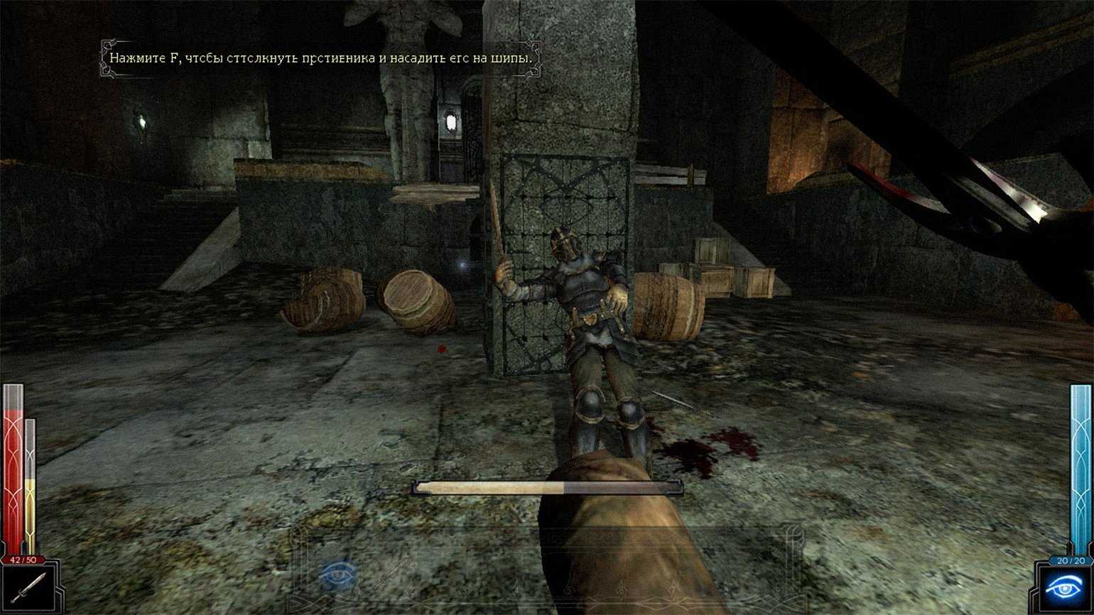 Дело в том, что Dark Messiah — экшен от первого лица с элементами RPG, где ваше главное оружие не меч и не топор, а… правая нога. Вы пинками насаживаете врагов на колья, отправляете их в костёр или сбрасываете с обрыва — прямо как в Bulletstorm, но на пять лет раньше. И это лишь одна из нескольких механик игры.