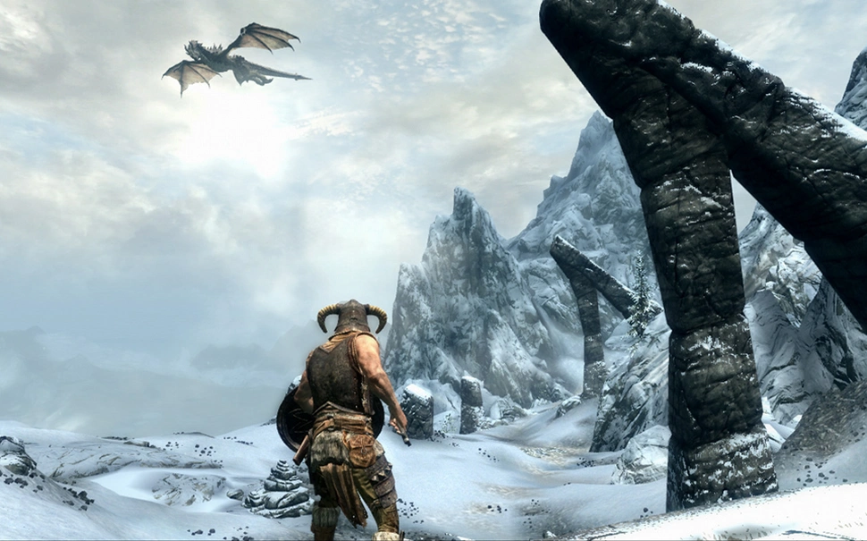 Едва запустив игру, мы поражались её красоте, и даже сейчас она не утратила обаяния. Леса, горные массивы, архитектура — всё пропитано атмосферой скандинавской сказки. Bethesda изо всех сил стремились подтолкнуть к исследованию мира, разжечь жажду открытий. К концу игры карта наполнялась значками, а мы всё продолжали гадать, что ждёт в новых руинах, пещерах и крепостях.