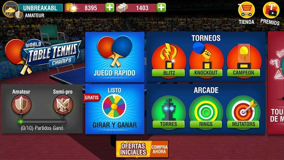 Если вы хотите попробовать еще одну игру в пинг-понг с довольно хорошей трехмерной графикой, изображениями и анимацией, World Table Tennis Champs — хорошая альтернатива. И дело в том, что в этом названии представлены несколько игровых режимов, которые вы можете выбрать, с помощью которых вам предстоит столкнуться с несколькими противникамикаждый из них сложнее и умелее другого, поэтому вы должны совершенствоваться с первой игры, пока не овладеете техникой и не станете непобедимым.