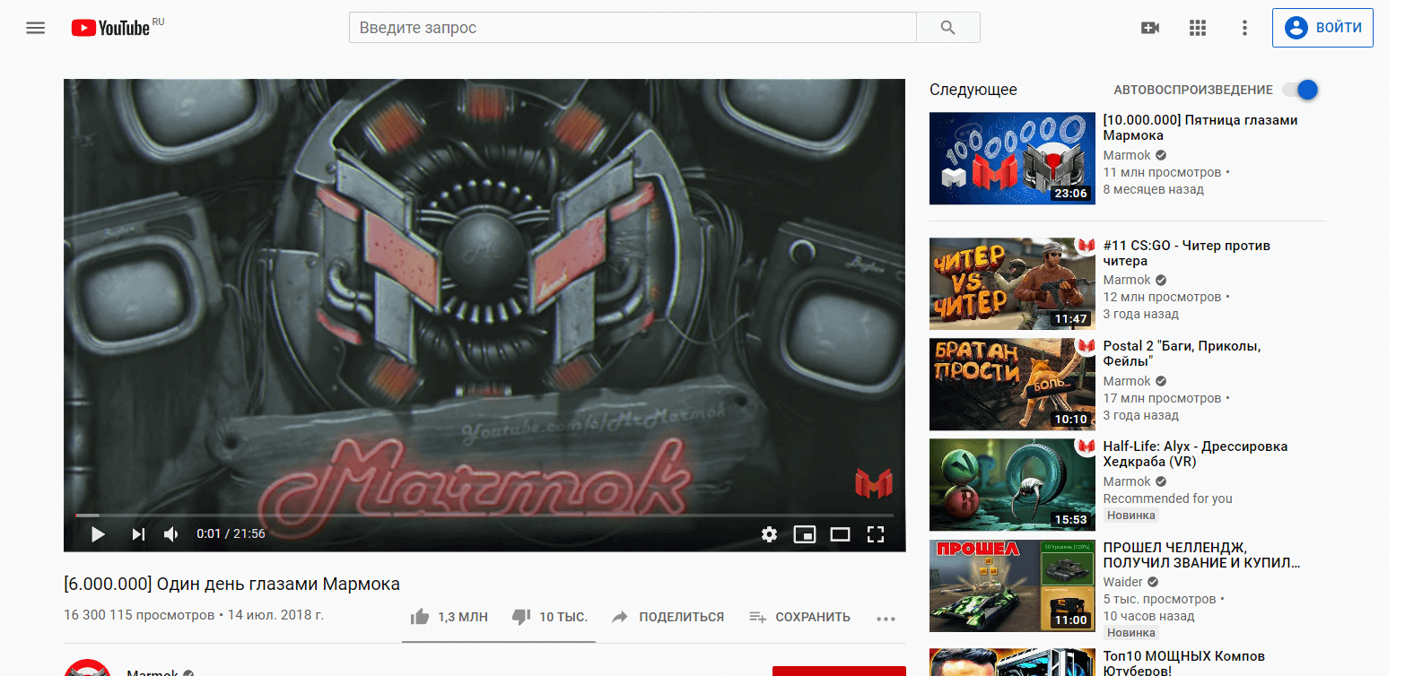Ролики один день глазами Мармока и пятница глазами Мармока набрали больше 10 миллионов просмотров каждый.