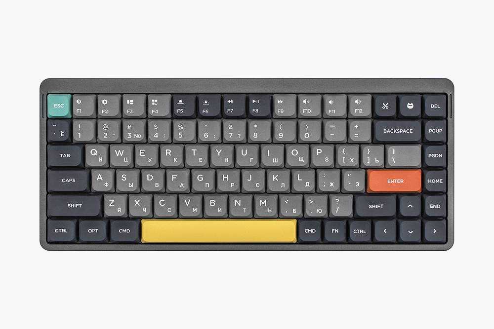 Компактная механическая клавиатура в ретрофутуристичном стиле. У нее тихие клавиши с приятным звуком и коротким ходом. Ее вполне комфортно использовать даже в людном офисе, где обычная «механика» будет раздражать коллег громким стуком.