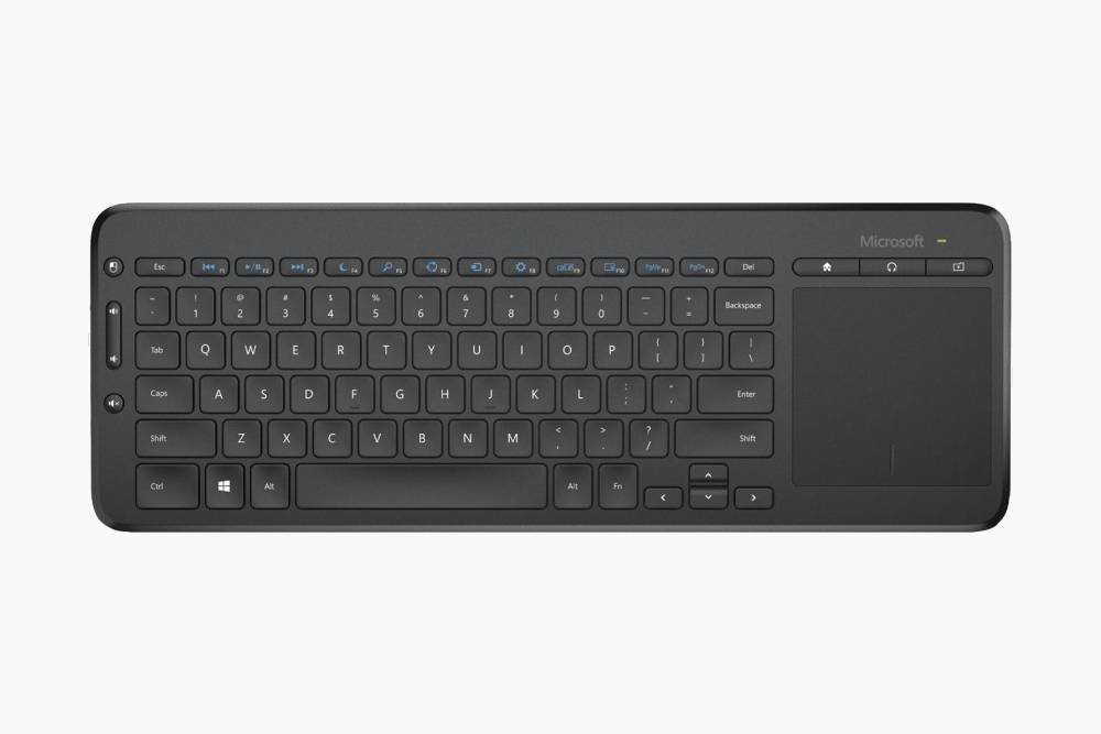 Особенность Microsoft All-in-One Media Keyboard — панель трекпада справа от клавиш. Пользоваться им приятно, отклик у панели быстрый — пригодится для владельцев умных телевизоров.