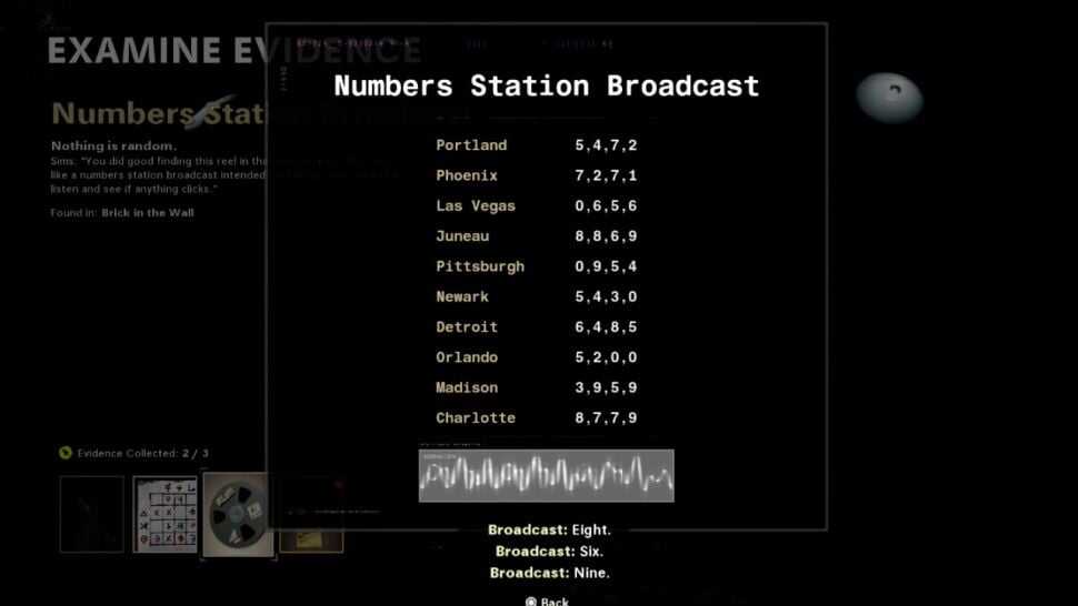 Для расшифровки дискеты придется найти 3 улики, разбросанные по разным миссиям кампании. К счастью, в них можно вернуться с помощью доски улик в убежище вплоть до начала последней миссии – перед ее запуском игра предупредит о точке невозврата.