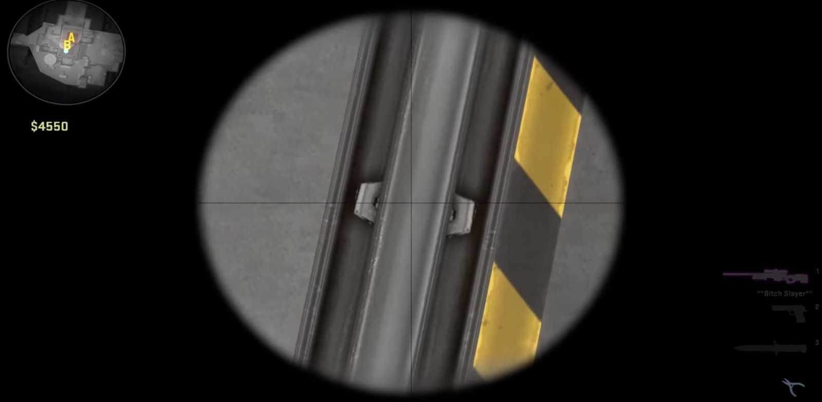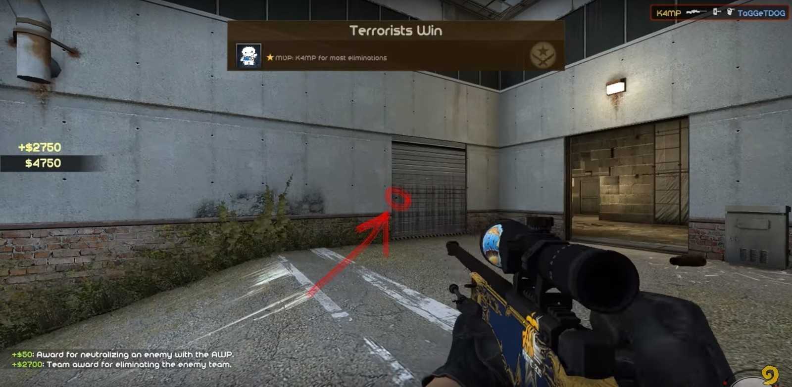 Прострел бокса на миду от лица террориста. Нужно встать так, как показано на фото и сделать прострел в эти ворота как показано на фото.