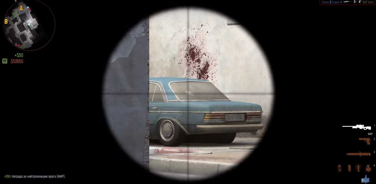 Еще один полезный прострел. Целиться нужно в заднее стекло машины как показано на фото.