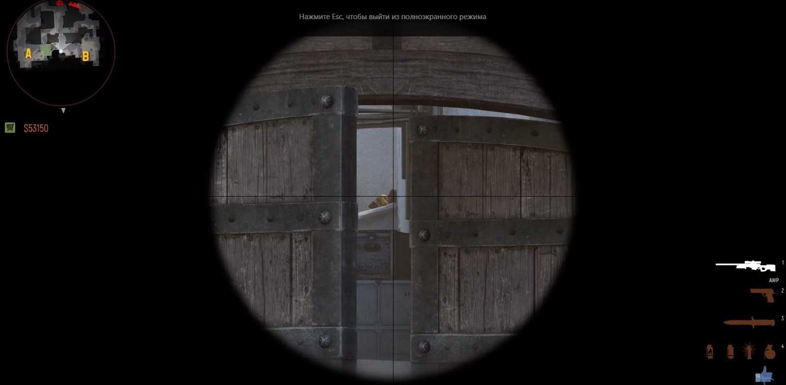 Сквозь эти же двери есть вероятность прострелить авапера слева, для этого нужно выполнять прострел вот здесь.