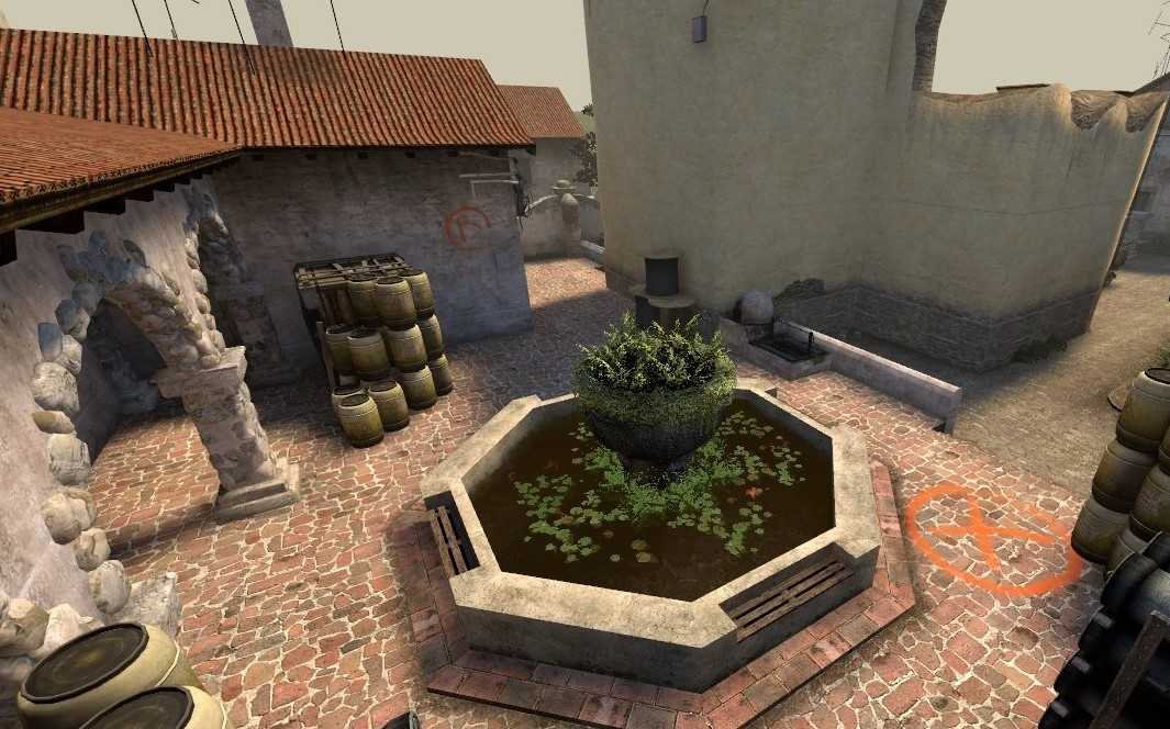 Зона Б (B Site) – площадка вокруг фонтана. Террористы могут заложить бомбу в этом месте.