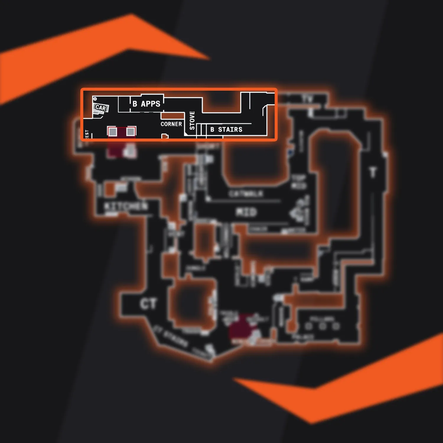 Для Зоны B апартаменты B имеют решающее значение для контроля над территорией. Чтобы попасть в апартаменты, игрокам нужно выйти из переулка на другой стороне.