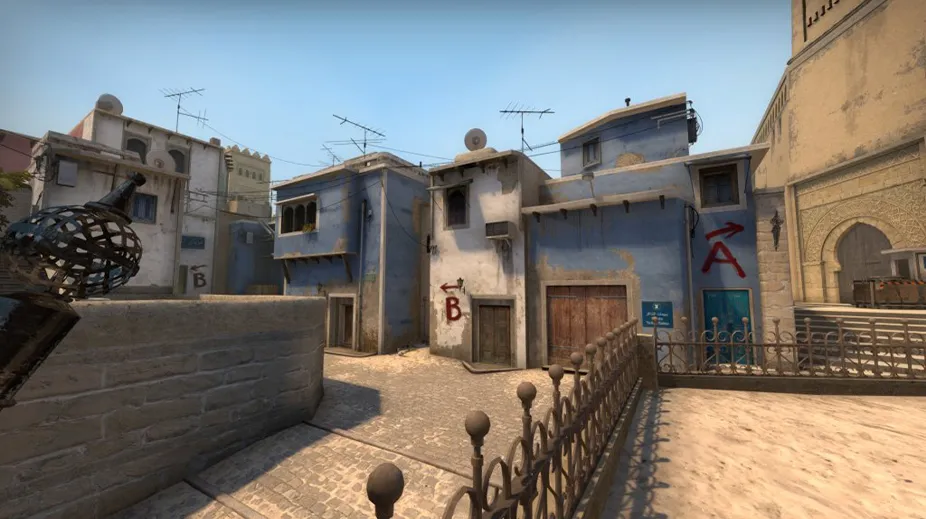 Карта выделяет три главне зоны: A, B и MID. Выбрав Мираж, вы перенесетесь на Ближний Восток, где в неприметном городке происходит столкновение между спецназом “SAS” и террористами из “Феникс”. Главная цель боевиков — взорвать оружие, спрятанное на базах A и B. Чтобы добиться желаемого эффекта, нужно либо убить всех пятерых противников на карте, либо заложить бомбу на одной из баз, не позволив ее очистить.