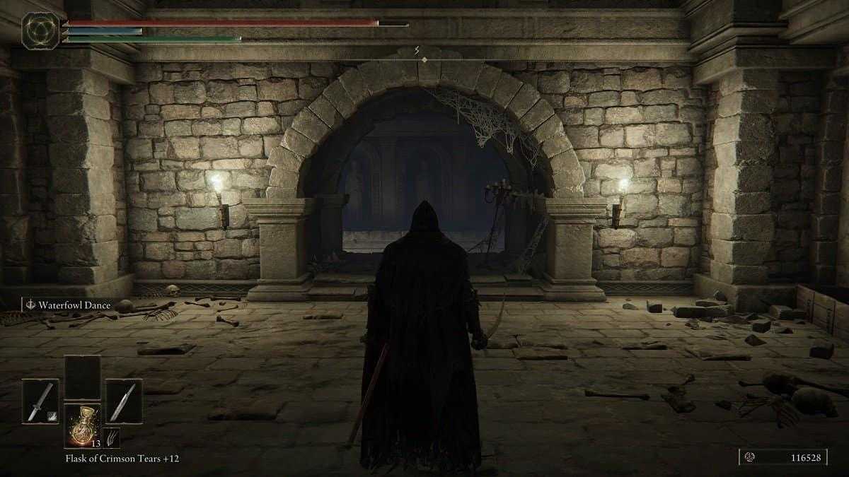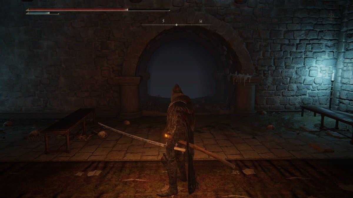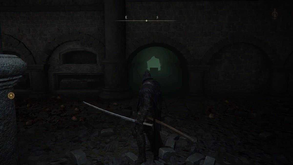 От Места Благодати продолжайте движение вниз, пока не дойдете до области с четырьмя маленькими живыми сосудами. В северо-западном углу этой комнаты есть окно, в которое вы можете прыгнуть. Идите вперед, и вы окажетесь в часовне. С левой стороны этой области находится арка, заблокированная стеной. Ударьте по ней, чтобы рассеять иллюзию.