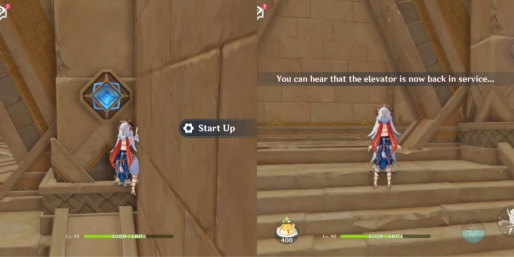 Спустившись на лифте, найдите кнопку, чтобы активировать другой лифт. На этот раз механизм выведет игроков на более высокий уровень.